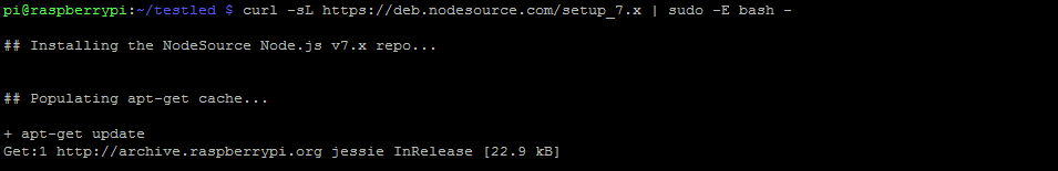 $ curl -sL https://deb.nodesource.com/setup_7.x | sudo -E bash -