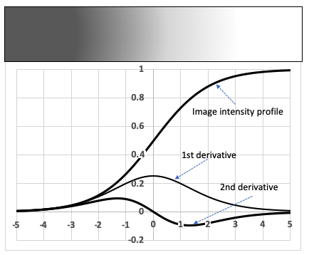 Here, you can see that the intensity of the image changes from dark to bright around the midway point, so the edge of ...