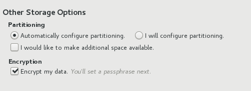 When you install Red Hat Enterprise Linux 7 or one of its offspring, you have the option of encrypting the drive. All you have to do is to click on a checkbox: