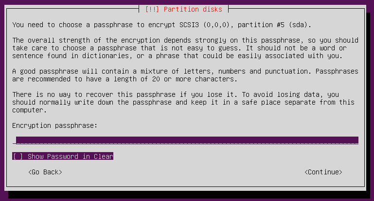 After choosing this option, you will then be asked to enter a passphrase: