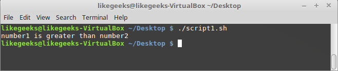 #!/bin/bash if [ 12 -gt 10 ] then echo "number1 is greater than number2" else echo "number1 is less than number2" fi