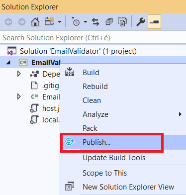 Now, we need to deploy our function to Azure. We can do this directly from Visual Studio, as follows: