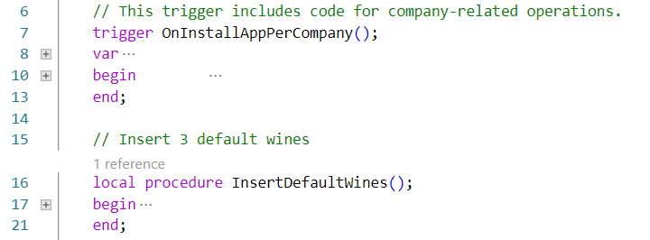 If you hover over line numbers in the code editor, a - will appear close to the initial part of a code block. Click on it to fold it, and a + will appear. Click on this, and the code block unfolds: