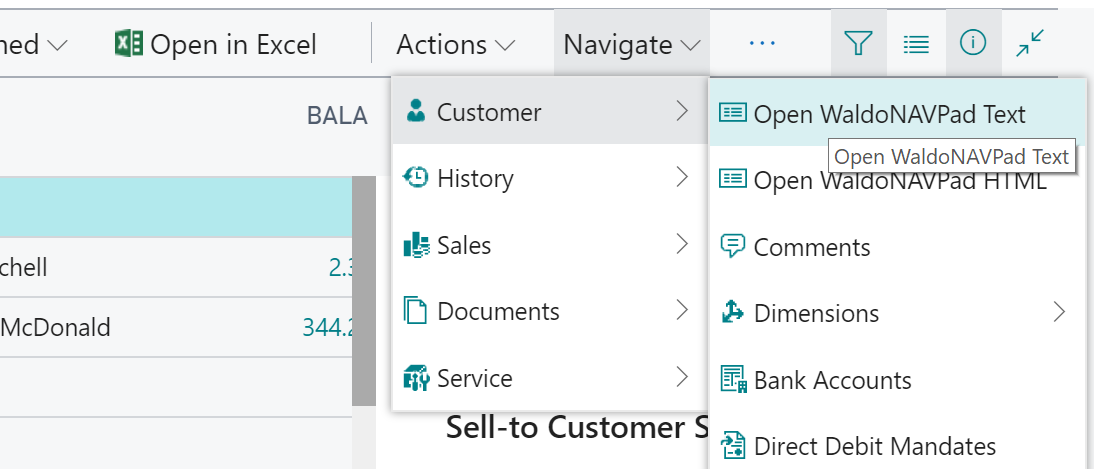 Once in Visual Studio Code, the app builds and publishes as is. You can simply create your launch.json, download the symbols, and build the app right away. This will get you to the Customer List page, where there are the following two new actions: