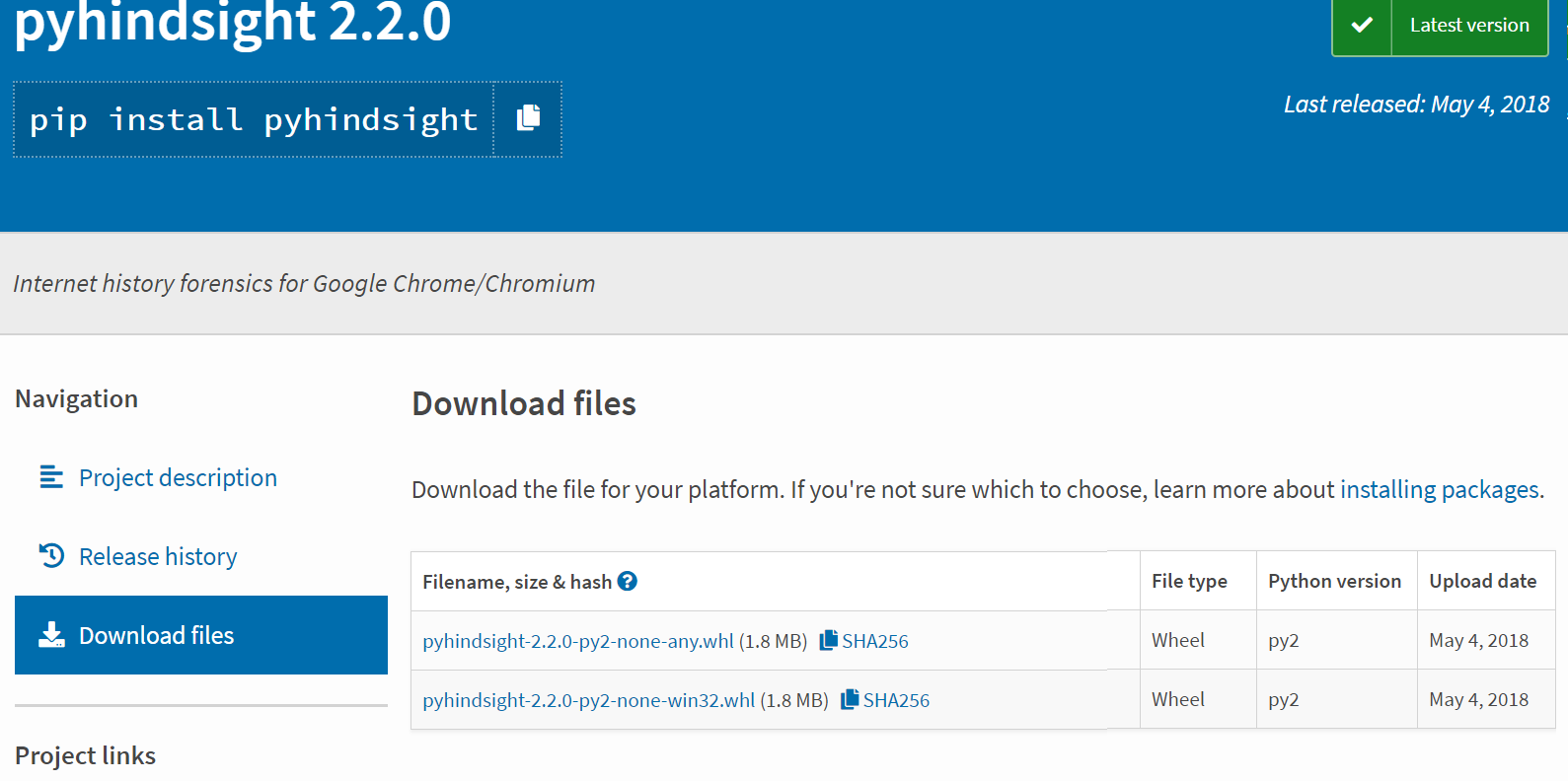 Hindsight is an open source tool for parsing a user’s Chrome browser data and allows you to analyze several different types of web artifacts, including URLs, download history, cache records, bookmarks, preferences, browser extensions, HTTP cookies, and local storage logs in the form of cookies.
