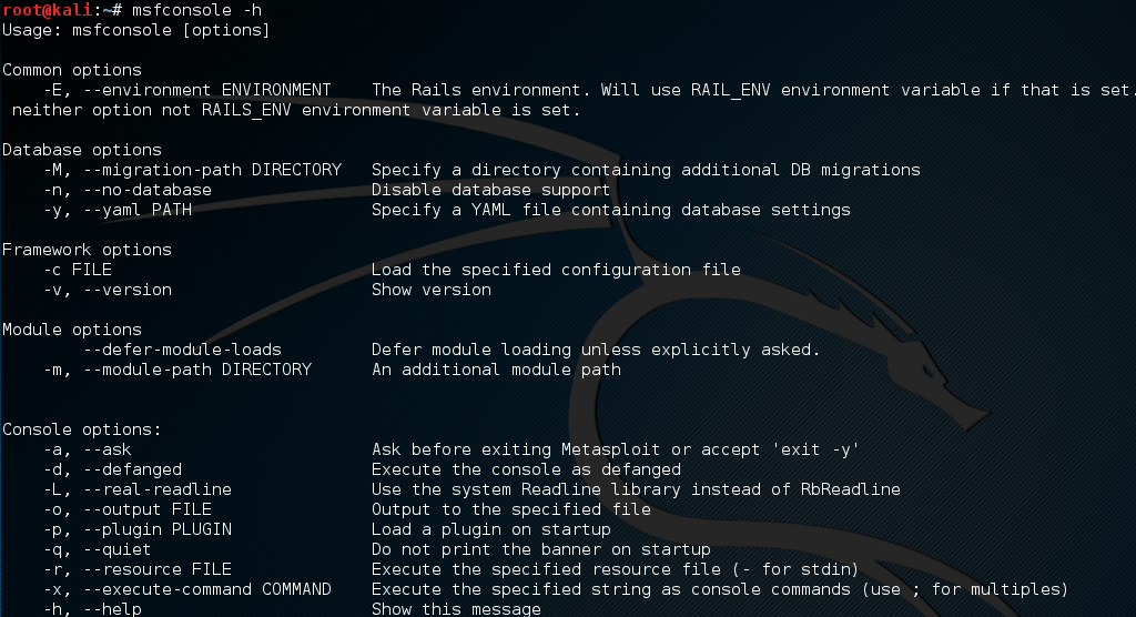 Msfconsole is the tool we can use to interact with modules and execute exploits. This tool is installed by default in the Kali linux distribution:
