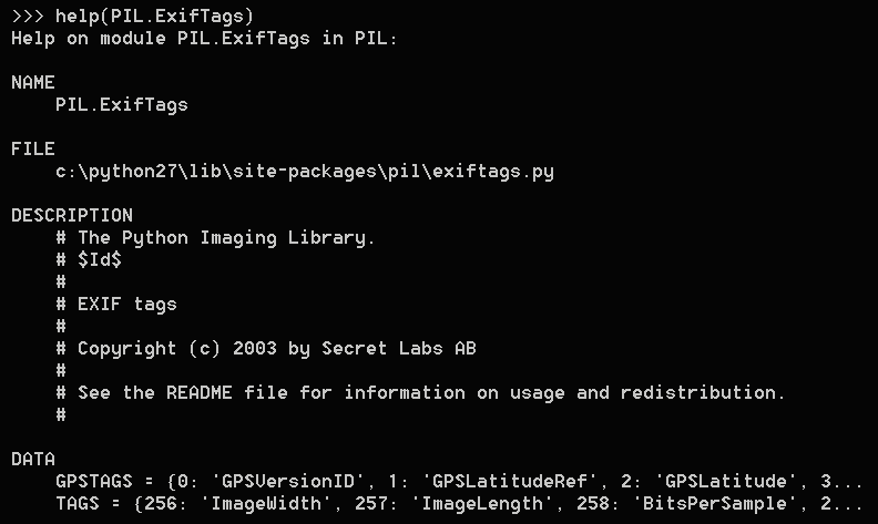 We can see the official documentation for the exiftags package inside the pillow module ...