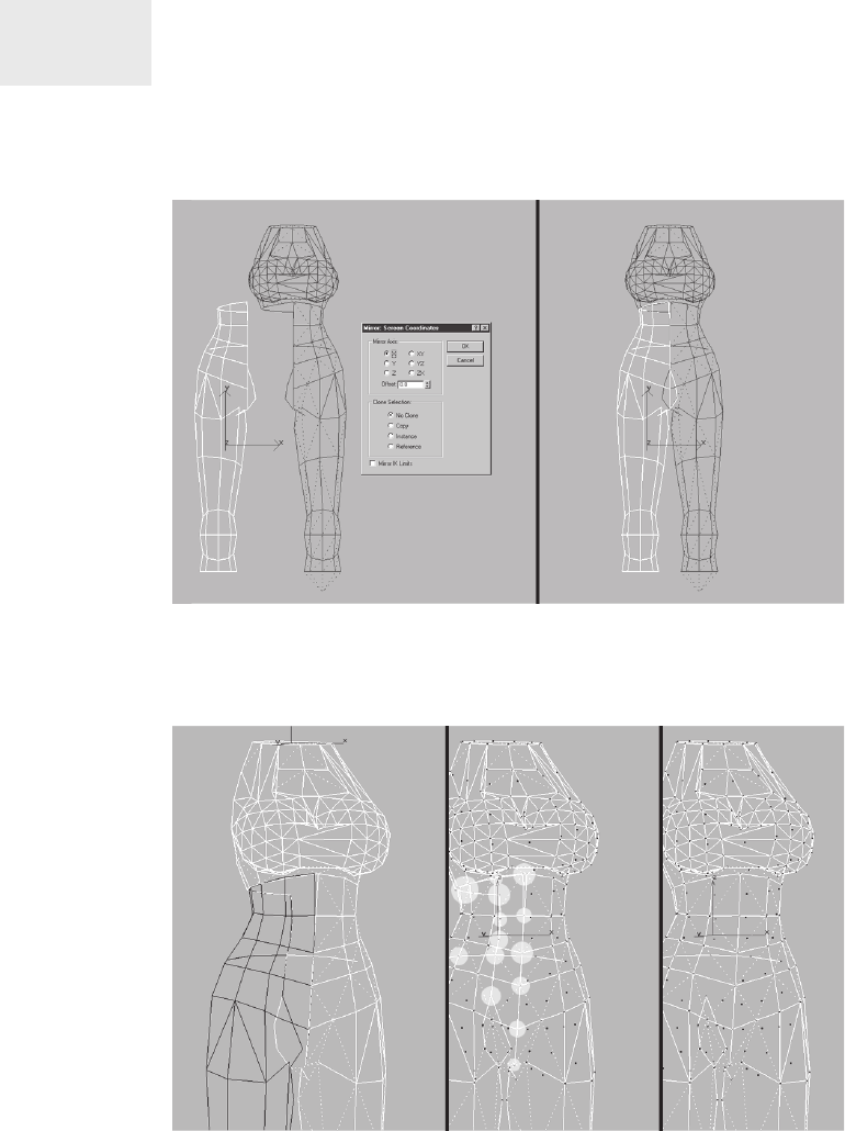 Torso, select the faces of the lower torso and leg, and Shift-drag to