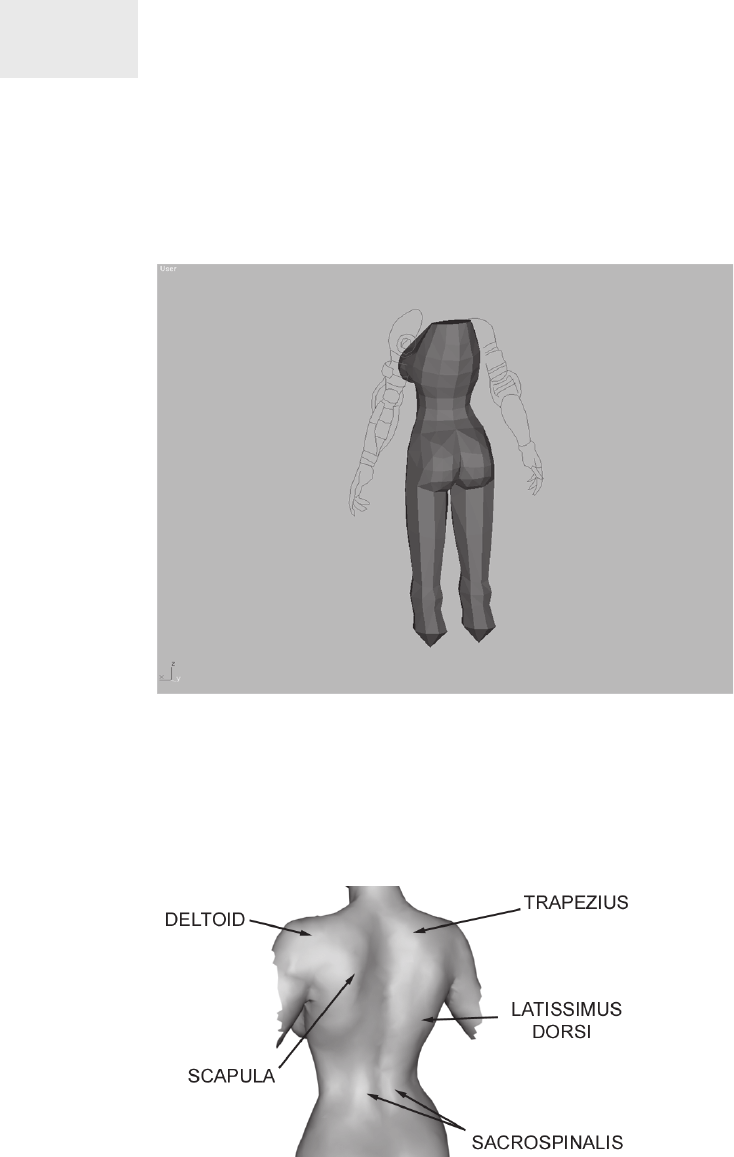 the shoulders and neck geometry. The upper back, neck, and shoul