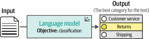 Un compito comune nell'elaborazione del linguaggio naturale è la classificazione. L'obiettivo del compito è addestrare un modello per assegnare un'etichetta o una classe a un testo in ingresso (vedi Figura 4-1). La classificazione del testo viene utilizzata in tutto il mondo per un'ampia gamma di applicazioni, dall'analisi del sentimento al rilevamento delle intenzioni, dall'estrazione di entità al rilevamento del linguaggio. L'impatto dei modelli linguistici, sia rappresentativi che generativi, sulla classificazione non può essere sottovalutato.
