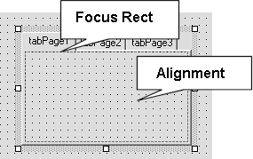 Each TabPage designer draws a focus rectangle and the control alignment grid ...