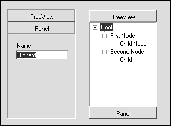 The main functional requirement of the OutlookBar control is that the control will host other controls within the OutlookBarTab components. Each new child control will be associated with a particular tab within the OutLookBar, and that child control will be activated when its parent tab is selected. Figure 8.1 shows the OutlookBar control hosting a TreeView control and a Panel control.