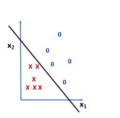 When a set of output values can be split by a straight line, the output values are said to be linearly separable. Geometrically, this condition describes the situation in which there is a hyperplane that separates, in the vector space of inputs, those that require positive output from those that require a negative output, as shown in the following figure: