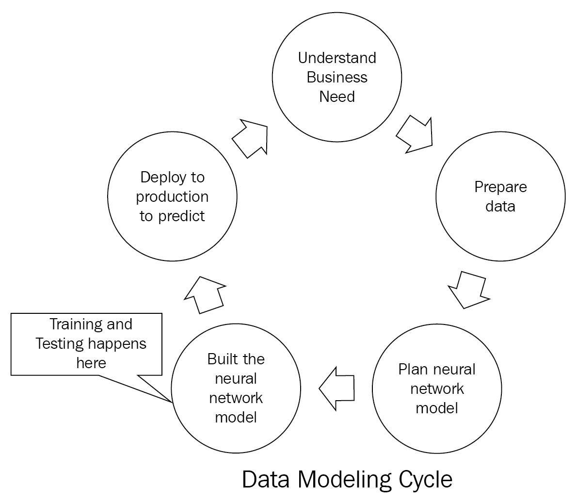 The data forms a key component for model building and the learning process. The data needs to be collected, cleaned, converted, and then fed to the model for learning. The overall data life cycle is shown as follows:
