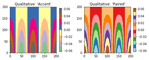 Besides defaulting to a perceptually continuous colormap, qualitative colormaps are now available for grouping values into categories: