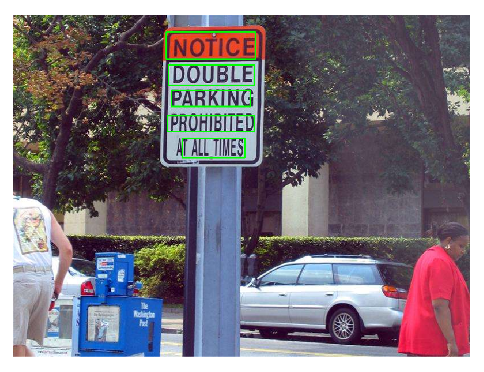 There are many different text detection methods implemented in OpenCV. In this recipe, you learned how to use a state-of-the-art deep learning approach for detecting text bounding boxes. The OpenCV class cv2.TextDetectorCNN_create creates a CNN (convolutional neural network) model, and loads its pre-trained weights from a specified file. After that, you only need to call the det.detect method, which returns a list of rectangles with the associated probabilities of rectangles containing text.