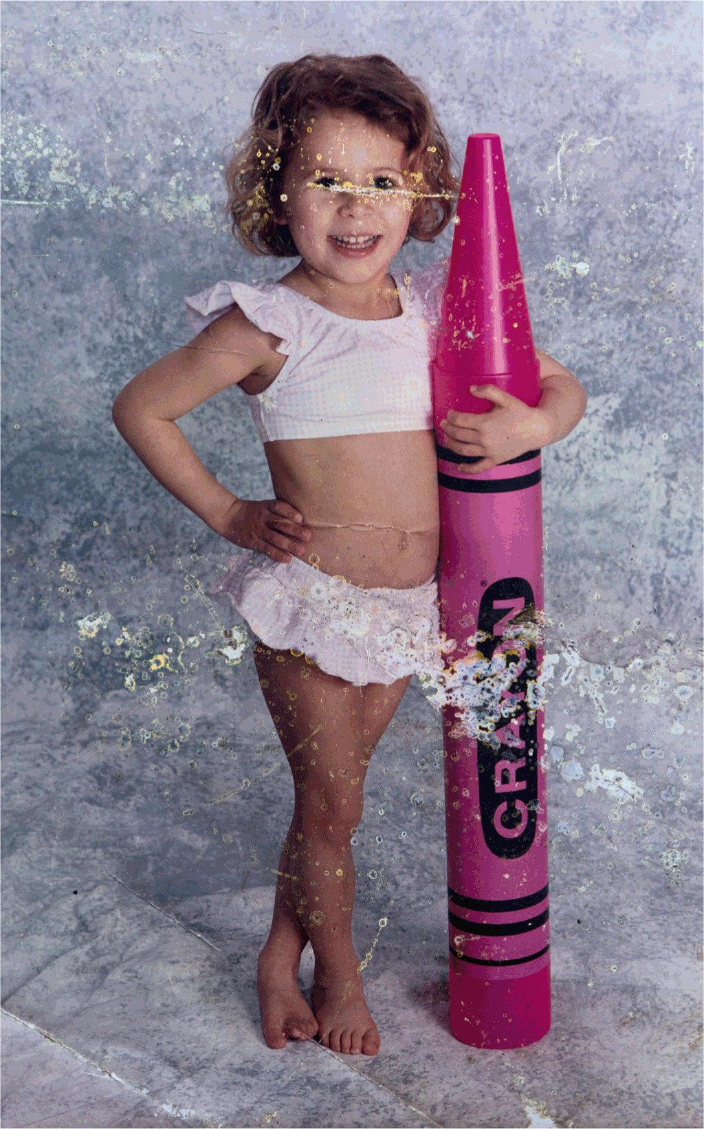 © Robert Hirsch. Little Girl with Big Crayon, circa 2000/2015. 20 × 30 inches. Found, distressed chromogenic color print.