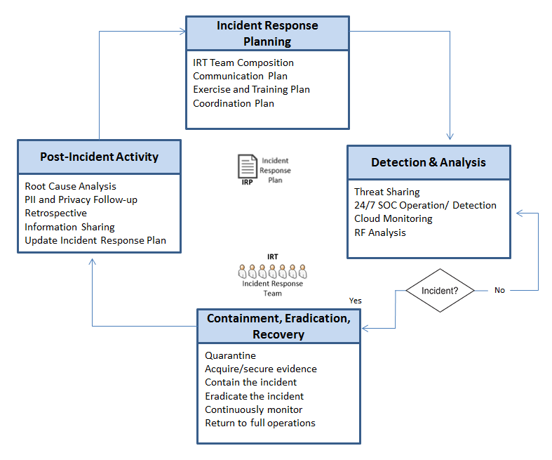 IoT incident response and management can be broken down into four phases: