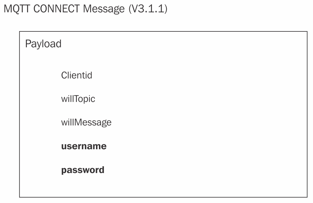 Some protocols, such as MQTT, only provide the ability to use a username/password combination for native-protocol authentication purposes. Within MQTT, the connect message includes the fields for passing this information to an MQTT broker. In the MQTT Version 3.1.1 specification defined by OASIS, you can see these fields within the connect message (reference: http://docs.oasis-open.org/mqtt/mqtt/v3.1.1/os/mqtt-v3.1.1-os.html):