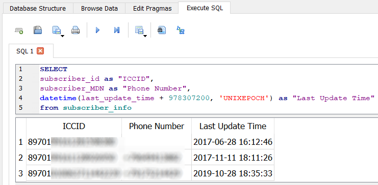 As you can see, there is not only phone numbers available, but also the Subscriber Identity Module (SIM) card's Integrated Circuit Card Identifier (ICCID).