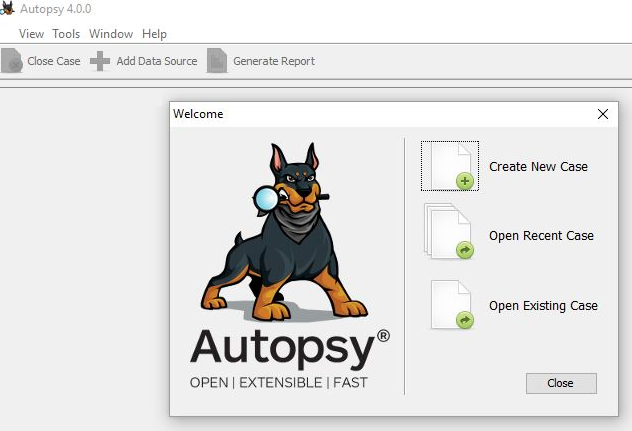 - Open the Autopsy tool and select the Create New Case option, as shown in the following screenshot: