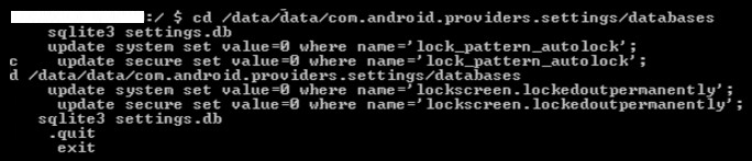 - Open the command prompt and execute the following: /data/data/com.android.providers.settings/databases sqlite3 settings.db: