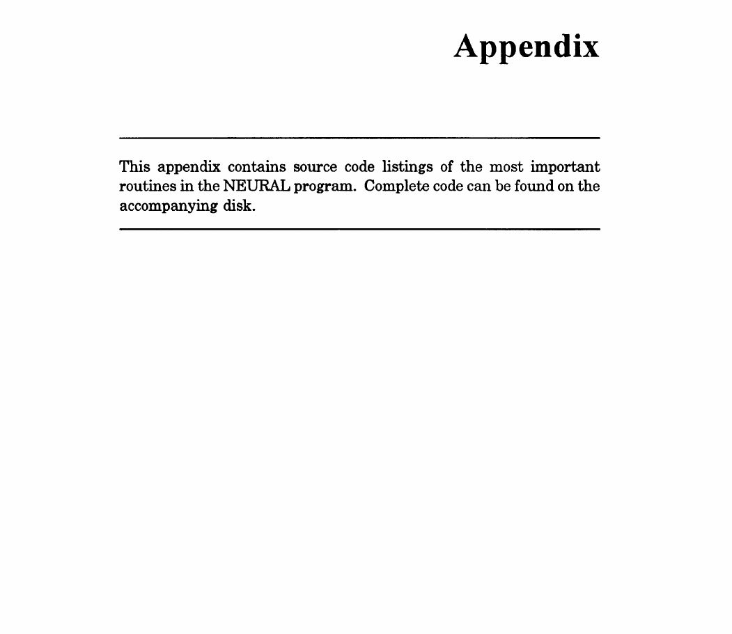 routines in the NEURAL program. Complete code can be found on the