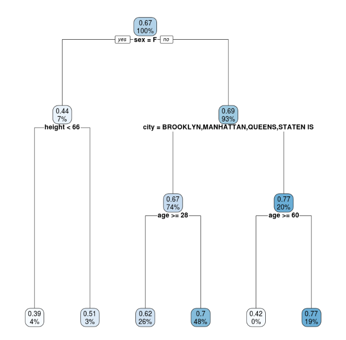 devtools::install_github("cran/rpart.plot") library(rpart.plot) rpart.plot(fit,cex=.75)