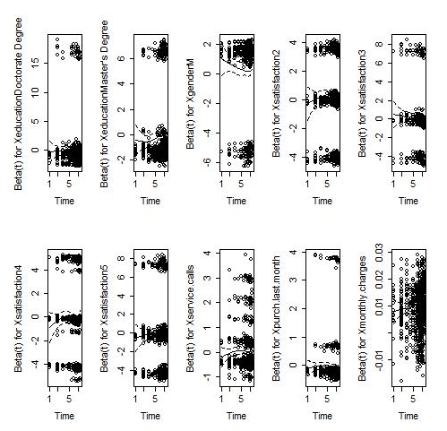 The plots produced also show that all of the variables are dispersed in a uniform fashion as time increases. Any change due to time would be indicated by a pronounced line that slopes upward or downward: