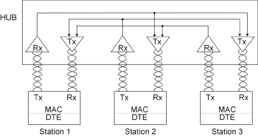 nodes connected to a wiring hub, or concentrator. Concentrators can then be connected to
