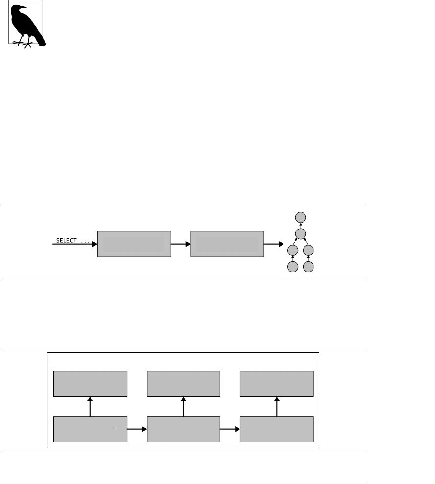 语句到协调器,协调器之后调用工作节点从数据源获得数据、创建结果数据集并将结果返