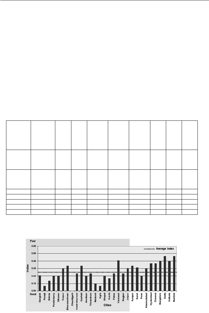 where 0 indicates good and 0.6 indicates poor index value, and most of the major metro