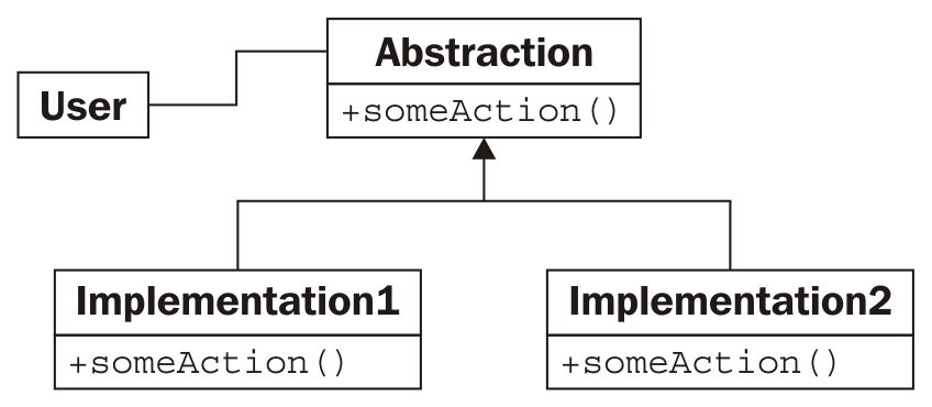 The strategy pattern is a common demonstration of abstraction in object-oriented programming. The pattern implements different solutions to a single problem, each in a different object. The client code can then choose the most appropriate implementation dynamically at runtime.