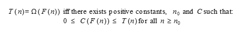 In a similar way that Big O notation describes the upper bound, Omega notation describes a tight lower bound. The definition is as follows: