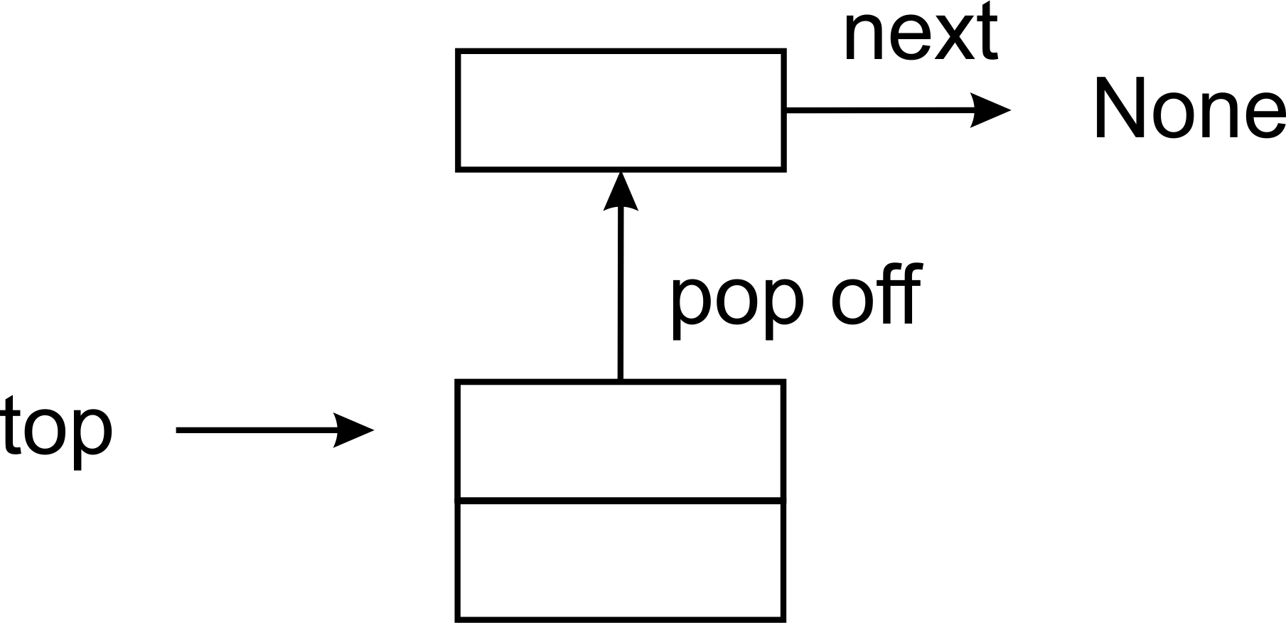 def pop(self): if self.top: data = self.top.data self.size -= 1 if self.top.next: self.top = self.top.next else: self.top = None return data else: return None