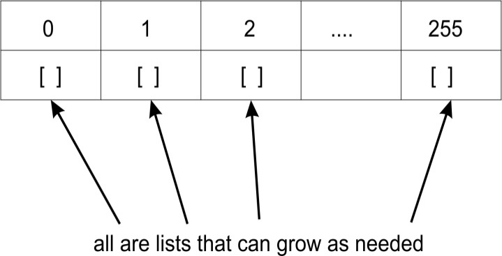 Chaining is a strategy for resolving conflicts and avoiding the limit to the number of elements in a hash table. In chaining, the slots in the hash table are initialized with empty lists:
