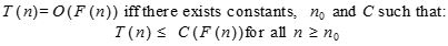The letter "O" in big O notation stands for order, in recognition that rates of growth are defined as the order of a function. We say that one function T(n) is a big O of another function, F(n), and we define this as follows: