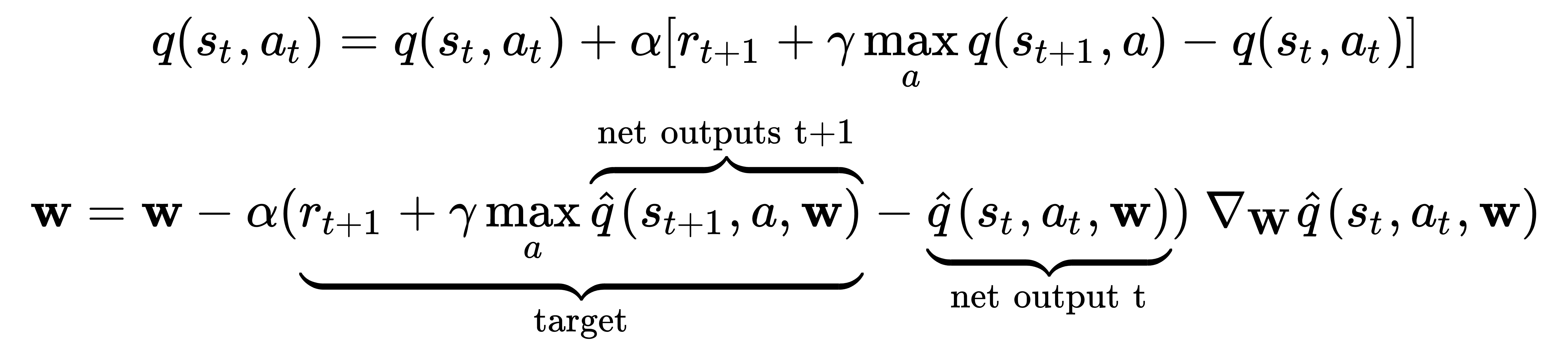 We can apply the same to Sarsa, which uses a similar update rule, but we'll approximate the action-value function instead: