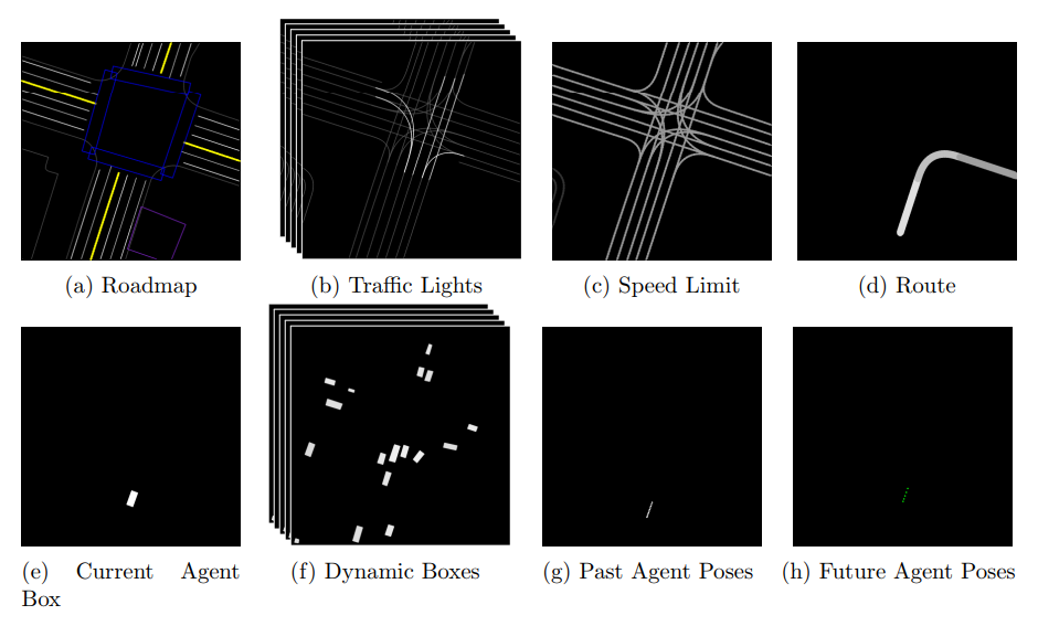 We can see an example of a ChauffeurNet input/output combination in the following diagram: