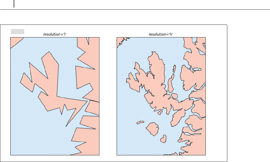 低解像度の海岸線はこのレベルの拡大図には適していないことに注意してください。一方、高解