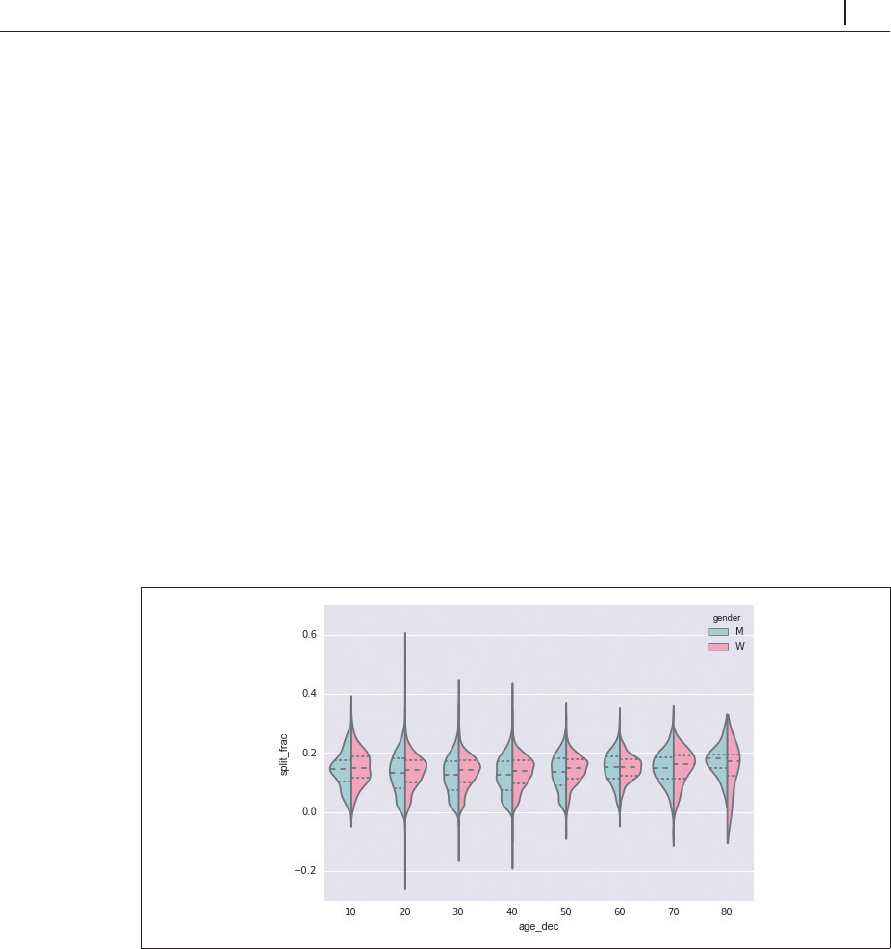 図4-130 バイオリンプロットによる男女別のスプリット率