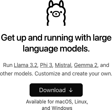 Ollamaプロジェクトはollama.comでホストされている。 ホーム画面にはmacOS、Linux、Windows用のダウンロードオプションがある。Windows版にはWindows Subsystem for Linux(WSL)が必要であることにも注意しよう。この章では、macOS版を使用する。