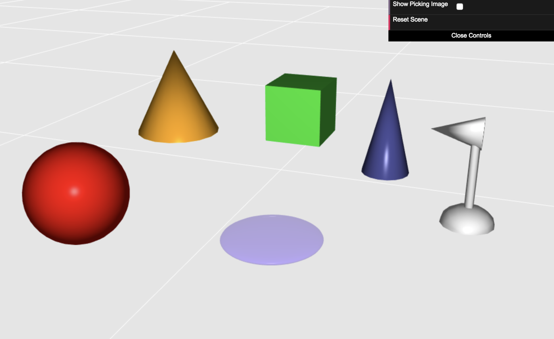 - Here, you have a set of objects, each one of which has a unique diffuse color property. As was the case in previous examples, you can move the camera around the scene. Also, note that the cube has a texture and that the flat disk is translucent. As you may expect, the code in the draw function handles textures, coordinates, and also transparencies, so it looks a bit more complex than before (you can check it out in the source code). This is a more realistic draw function. ...