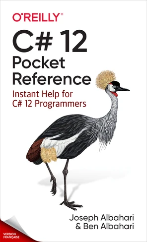 CompilationSyntaxeIdentificateurs et mots-clésLittéraux, ponctuateurs et opérateursCommentairesLes bases de la typologieExemples de types prédéfinisExemples de types personnalisésTypes et conversionsTypes de valeurs et types de référencesTaxonomie des types prédéfinisTypes numériquesLettres numériquesConversions numériquesOpérateurs arithmétiquesOpérateurs d'incrémentation et de décrémentationOpérations intégrales spécialiséesTypes d'intégrales 8 et 16 bitsValeurs spéciales flottantes et doublesdouble Versus décimalErreurs d'arrondi des nombres réelsType et opérateurs booléensOpérateurs d'égalité et de comparaisonOpérateurs conditionnelsChaînes et caractèresType de chaîneChaînes UTF-8TableauxInitialisation de l'élément par défautIndices et fourchettesTableaux multidimensionnelsExpressions simplifiées d'initialisation des tableauxVariables et paramètresLa pile et le tasAffectation définitiveValeurs par défautParamètresvar - Variables locales implicitement typéesNouvelles expressions de type cibleExpressions et opérateursExpressions d'affectationPriorité et associativité des opérateursTable de l'opérateurOpérateurs nulsOpérateur à coalescence nulleOpérateur d'affectation à coalescence nulleOpérateur sans conditionDéclarationsDéclarationsDéclarations d'expressionDéclarations de sélectionDéclarations d'itérationSauter des énoncésEspaces de nomsEspaces de noms à l'échelle du fichierLa directive d'utilisationLa directive d'utilisation globaleen utilisant la statiqueRègles au sein d'un espace de nomsAlias de types et d'espaces de nomsLes classesChampsConstantesMéthodesConstructeurs d'instanceDéconstructeursInitialisateurs d'objetsCette référencePropriétésIndexeursConstructeurs primaires (C# 12)Constructeurs statiquesClasses statiquesFinaliseursTypes et méthodes partielsLe nom de l'opérateurHéritagePolymorphismeCasting et conversions de référencesMembres des fonctions virtuellesClasses abstraites et membres abstraitsCacher les membres héritésFonctions et classes de scellementLe mot-clé de baseConstructeurs et héritageSurcharge et résolutionL'objet TypeBoxe et UnboxingVérification de type statique et en cours d'exécutionLa méthode GetType et l'opérateur typeofListe des membres de l'objetÉgaux, Égaux de référence et GetHashCodeLa méthode ToStringStructuresSémantique de construction des structuresreadonly Structs et FunctionsModificateurs d'accèsAssemblées d'amisPlafonnement de l'accessibilitéInterfacesExtension d'une interfaceMise en œuvre explicite de l'interfaceImplémentation virtuelle des membres de l'interfaceRéimplémenter une interface dans une sous-classeMembres de l'interface par défautMembres de l'interface statiqueEnumsConversions d'énumérationsDrapeaux EnumsOpérateurs EnumTypes imbriquésGénériquesTypes génériquesMéthodes génériquesDéclaration des paramètres de typetypeof et types génériques non liésLa valeur générique par défautContraintes génériquesSous-classement des types génériquesDéclarations génériques autoréférencéesDonnées statiquesCovarianceContravarianceDéléguésÉcrire des méthodes de plug-in avec des déléguésCibles des méthodes statiques et d'instanceDélégués de multidiffusionTypes de délégués génériquesLes délégués Func et ActionCompatibilité des déléguésÉvénementsModèle d'événement standardAccesseurs d'événementsExpressions LambdaParamètres Lambda par défaut (C# 12)Capturer les variables externesLes expressions Lambda par rapport aux méthodes localesMéthodes anonymesDéclarations try et exceptionsLa clause de rattrapageLe dernier blocLancer des exceptionsPropriétés clés de System.ExceptionEnumération et itérateursEnumérationInitialisateurs de collection et expressions de collectionItérateursSémantique des itérateursComposer des séquencesTypes de valeurs annulablesNullable<T> StructConversions annulablesEncadrer/décadrer les valeurs nullesOpérateur de levagebool ? avec les opérateurs & et |Types et opérateurs nulsTypes de référence annulablesMéthodes d'extensionChaînage de méthodes d'extensionAmbiguïté et résolutionTypes anonymesTuplesNommer les éléments d'un tupleDéconstruction des tuplesEnregistrementsDéfinir un enregistrementMutation non destructiveConstructeurs primairesComparaison des records et de l'égalitéModèlesvar PatternMotif constantModèles relationnelsCombinateurs de motifsModèles de tuple et de positionModèles de propriétéModèles de listesLINQPrincipes de base de LINQExécution différéeOpérateurs de requête standardEnchaîner les opérateurs de requêteExpressions de requêteLe mot-clé letContinuation des requêtesGénérateurs multiplesRejoindreCommanderRegroupementOfType et CastLiaison dynamiqueLiaison statique et liaison dynamiqueReliure sur mesureReliure en langueRuntimeBinderExceptionReprésentation de la dynamique au moment de l'exécutionConversions dynamiquesvar Versus dynamicExpressions dynamiquesRésolution dynamique de la surcharge des membresFonctions non appelablesSurcharge de l'opérateurFonctions de l'opérateurSurcharge des opérateurs d'égalité et de comparaisonConversions implicites et explicites personnaliséesAttributsClasses d'attributsParamètres d'attributs nommés et positionnelsCibles d'attributsSpécifier plusieurs attributsRédaction d'attributs personnalisésRécupérer les attributs au moment de l'exécutionAttributs des informations sur l'appelantExpression de l'appelantFonctions asynchronesLes mots-clés await et asyncSaisir l'état localÉcrire des fonctions asynchronesParallélismeExpressions Lambda asynchronesFlux asynchronesPolymorphisme statiqueOpérateurs polymorphesMathématiques génériquesCode non sécurisé et pointeursLes bases du pointeurCode dangereuxLa déclaration fixeL'opérateur Pointer-to-MemberLe mot-clé stackallocTampons de taille fixevoid*Pointeurs de fonctionDirectives du préprocesseurAvertissement Prag