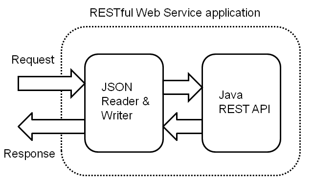 If you use Java RESTful web service frameworks, such as JAX-RS, for building RESTful web APIs, the serialization and deserialization of the request and response messages will be taken care of by the framework. However, understanding the JSON structure and tools for processing JSON will definitely help you when the default offering by the framework does not meet your requirements. The following diagram illustrates the role of the JSON marshalling (converting Java object to JSON format) and unmarshalling components (converting JSON format to Java Object) in a typical Java RESTful web service implementation:
