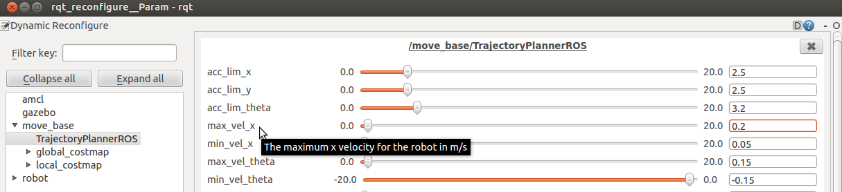 $ rosrun rqt_reconfigure rqt_reconfigure