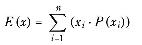 期待値は、スロットマシンを無限回プレイしたときに得られる賞金の平均額だと考えることができます。この式を使って単純な期待値を計算してみましょう。次に、その式をスロットマシンに適用します。