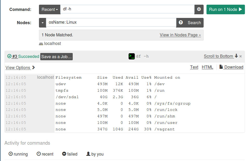 Output of a job that can be consumed via stdout, TXT, and HTML formats