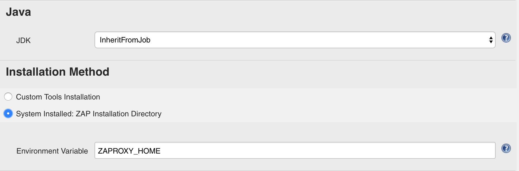For the installation method, we select the ZAP that is already installed on /usr/share/owasp-zap. We add this value to a ZAPROXY_HOME environment variable in /etc/environment.
